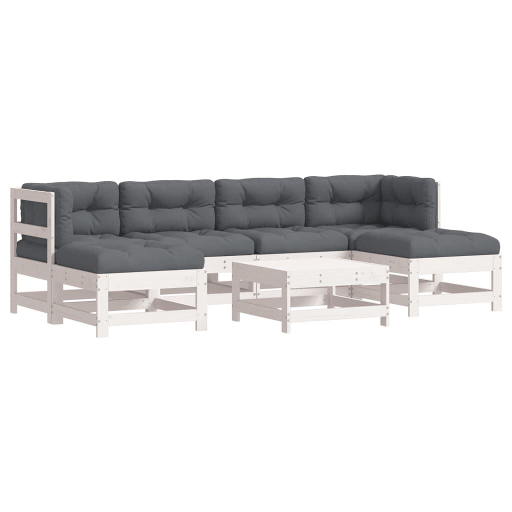 This wooden garden lounge set, standing out with the slatted design and soft cushions, will make a great addition to your garden, patio, or terrace for enjoying a cosy time with your family or friends. Solid pine wood: Solid pine wood is a beautiful natural material. Pine wood has a straight grain, and the knots give the material its signature, rustic look.Sturdy and stable frame: The wooden frame makes the lounge set sturdy and stable for daily outdoor use.Comfortable seat experience: The backrest and armrest add extra seating comfort for the garden furniture set. Also, the thickly padded cushions provide comfort for your sitting time.Modular design: The sofa set is flexible and easy to move around. You can combine it with other modular segments in the webshop to create your own personal garden lounge set configurations! Good to know:To make sure your outdoor furniture stays beautiful, we recommend protecting it with a waterproof cover.