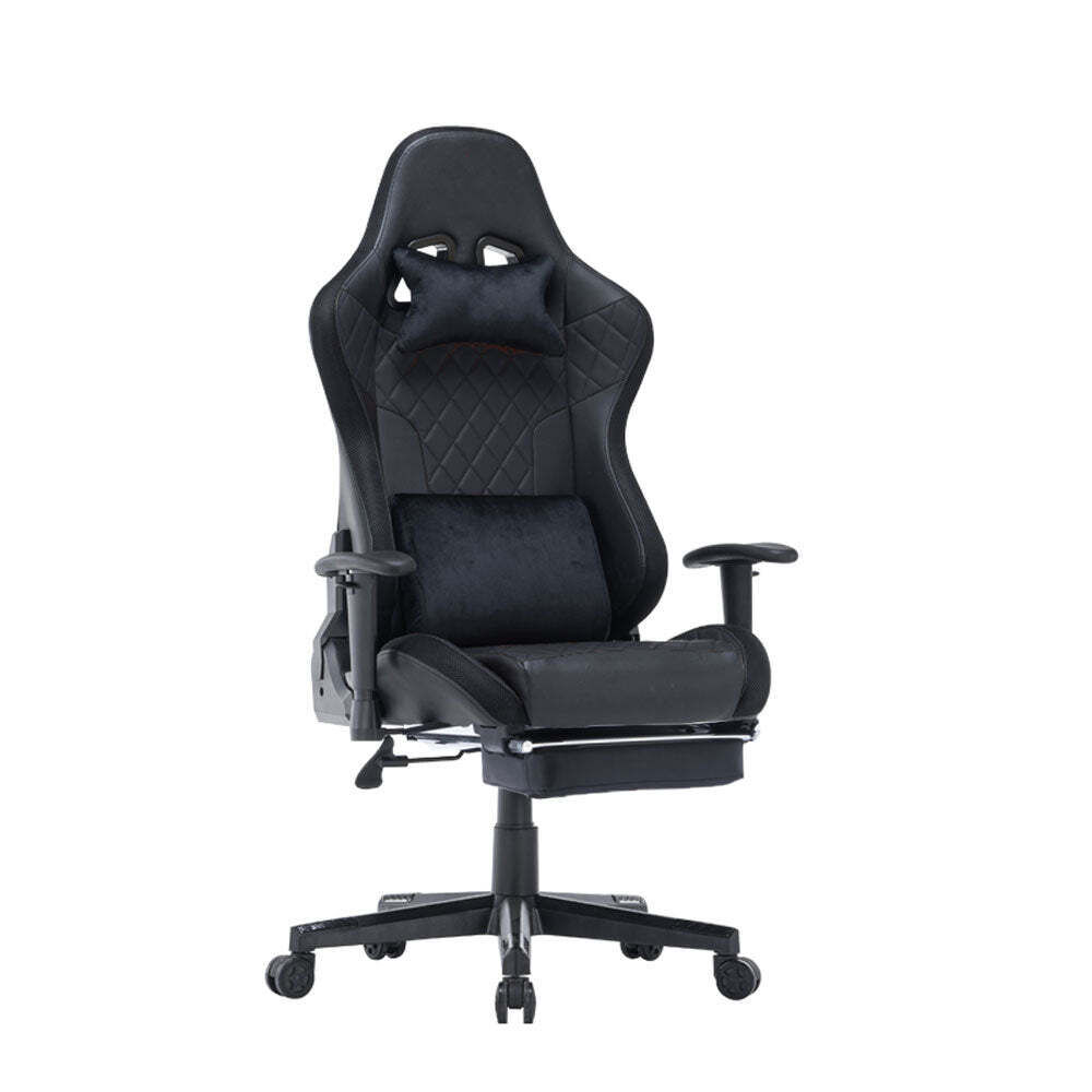 The is supremely stylish racing inspired gaming chair. Featuring a soft and durable faux leather material, vibrant LED RGB Lighting with voice control for a ambient feel when gaming, height adjustable base, tilt-able backrest, lumbar and neck cushions for superior comfort over those long game play sessions or when working from home.