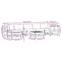 This wooden garden lounge set, standing out with the slatted design and soft cushions, will make a great addition to your garden, patio, or terrace for enjoying a cosy time with your family or friends. Solid pine wood: Solid pine wood is a beautiful natural material. Pine wood has a straight grain, and the knots give the material its signature, rustic look.Sturdy and stable frame: The wooden frame makes the lounge set sturdy and stable for daily outdoor use.Comfortable seat experience: The backrest and armrest add extra seating comfort for the garden furniture set. Also, the thickly padded cushions provide comfort for your sitting time.Modular design: The sofa set is flexible and easy to move around. You can combine it with other modular segments in the webshop to create your own personal garden lounge set configurations! Good to know:To make sure your outdoor furniture stays beautiful, we recommend protecting it with a waterproof cover.