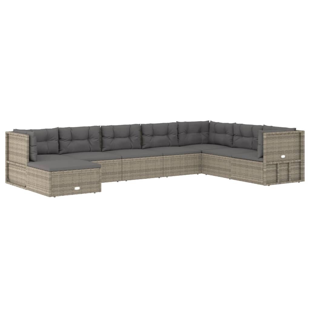 8 Piece Garden Lounge Set with Cushions Grey Poly Rattan
