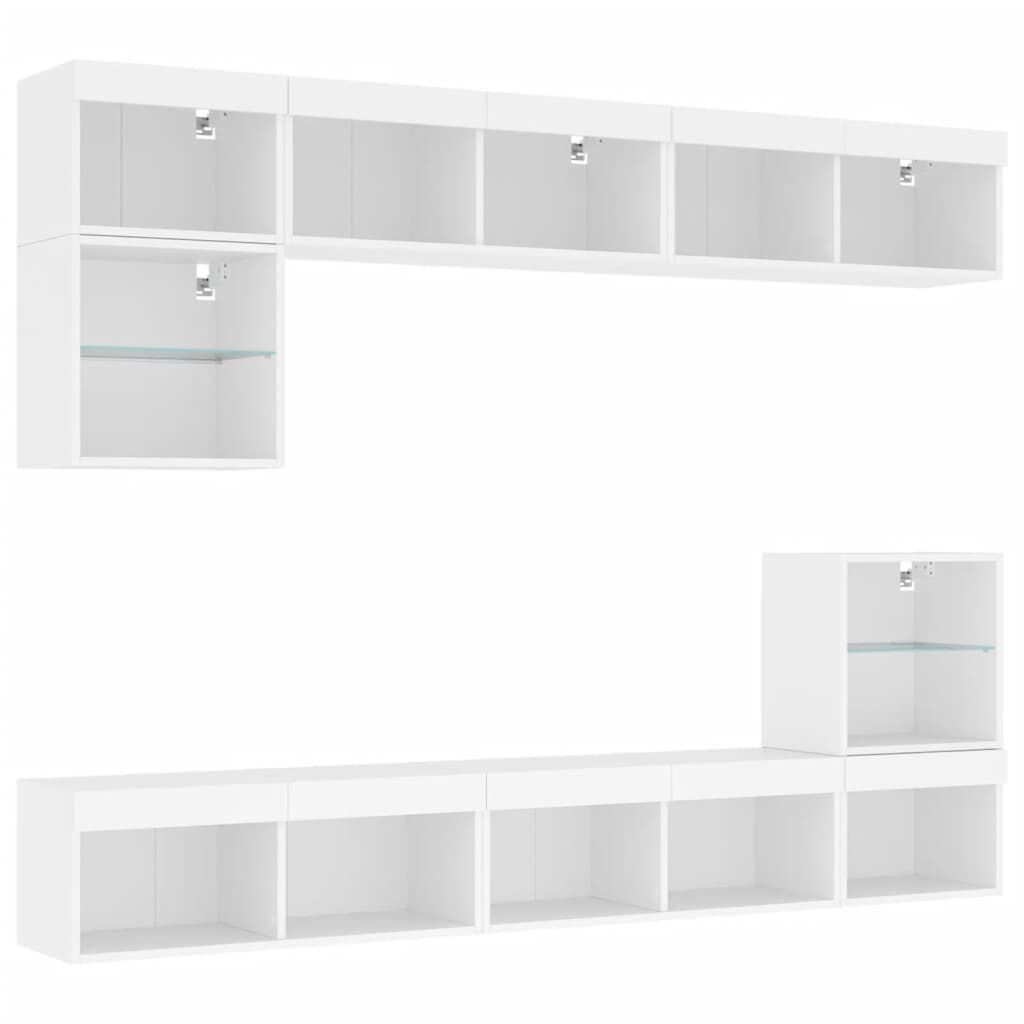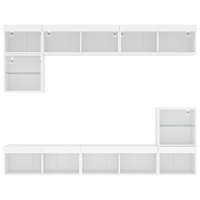 These TV wall units are the perfect solution for your living space to maximise space and keep the floor areas uncluttered. Sturdy material: The engineered wood is of exceptional quality with a smooth surface and also features strength, stability and resistance to moisture.RGB LED lights: The TV unit is equipped with vibrant RGB LED lights. With various customisable menus, you can effortlessly change the colour of the lights and even set them to adjust automatically. These LED lights not only enhance the contemporary look of the floating TV cabinet but also add to its trendy appeal.Wall-mounted design: The television unit can be wall-mounted to add extra storage space. That way, you can maximise your floor space and keep the area clean.Ample storage space: The floating TV unit provides ample space to store your daily essentials such as books, DVDs, magazines, media supplies and other items neatly organised and within easy reach.Versatile design: You can use it as a TV cabinet or mount it on the workplace wall for convenient storage of tools or other miscellaneous items. Also, it transforms an empty wall into a design feature. Good to know:Screws and plugs for inside the wall are not included. We advise to find and use screws and plugs suitable specifically for your walls. If you're not sure, you can consult with a professional. Please read and follow each step of the instructions.The product has a USB connector that requires a certified 5V USB power source (not included).