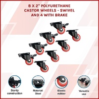 $38.53Looking for castor wheels that can handle even the heaviest loads? These heavy-duty two-inch polyurethane castor wheels from Randy Travis Machinery can hold up under even the toughest use. A set of eight swivel-capable wheels, four of them with an inbuilt brake, serve a wide range of uses, from making your office furniture more mobile to making it easier to move your heavy home workbench, even if you're on the petite side.