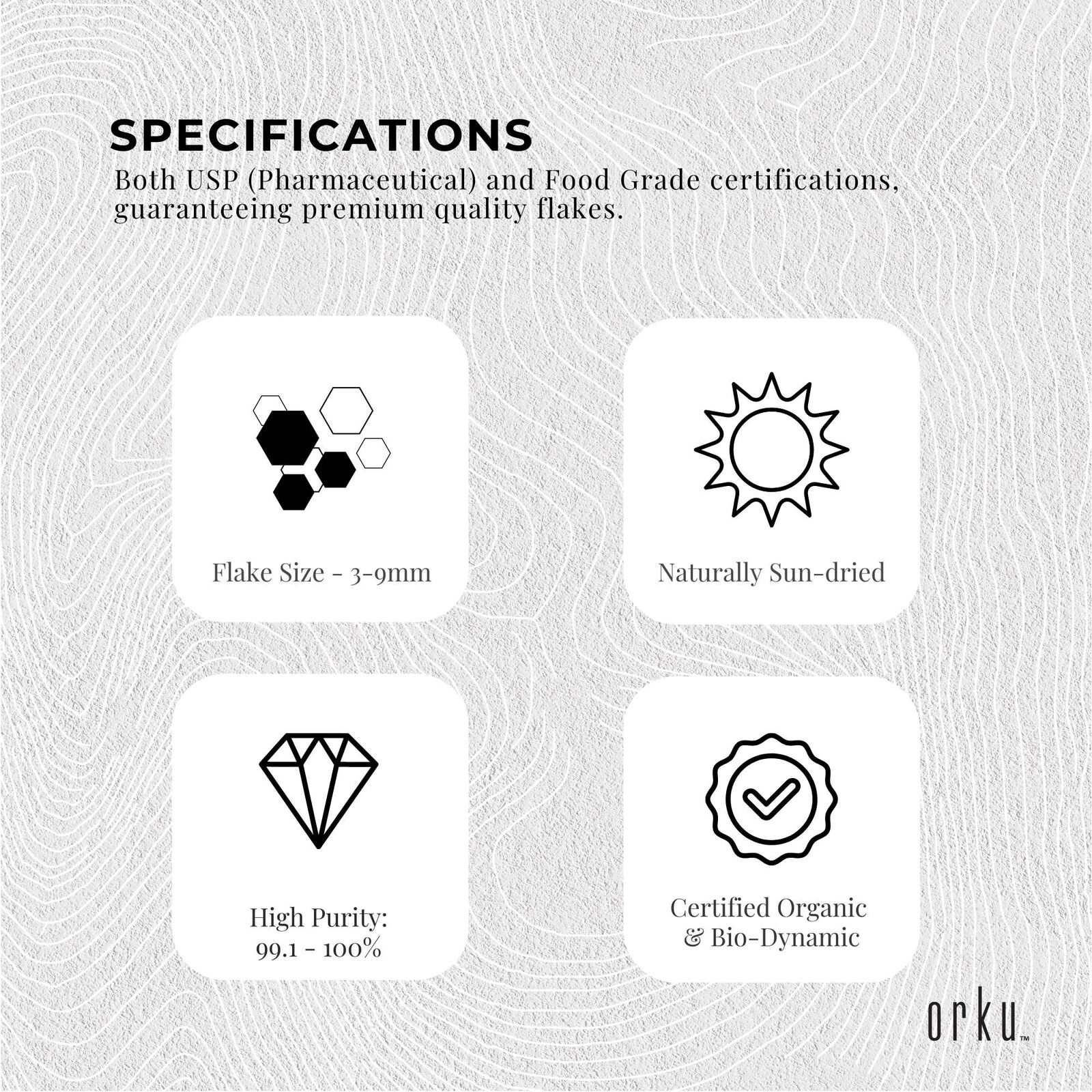 Magnesium Chloride Flakes are a pure salt collected from evaporated saltwater from the Dead Sea, recognised for its therapeutic qualities. Magnesium is an essential building block of many of our body's processes, keeping heart function, immune response, brain and nerve function, energy production and many other critical functions running smoothly.