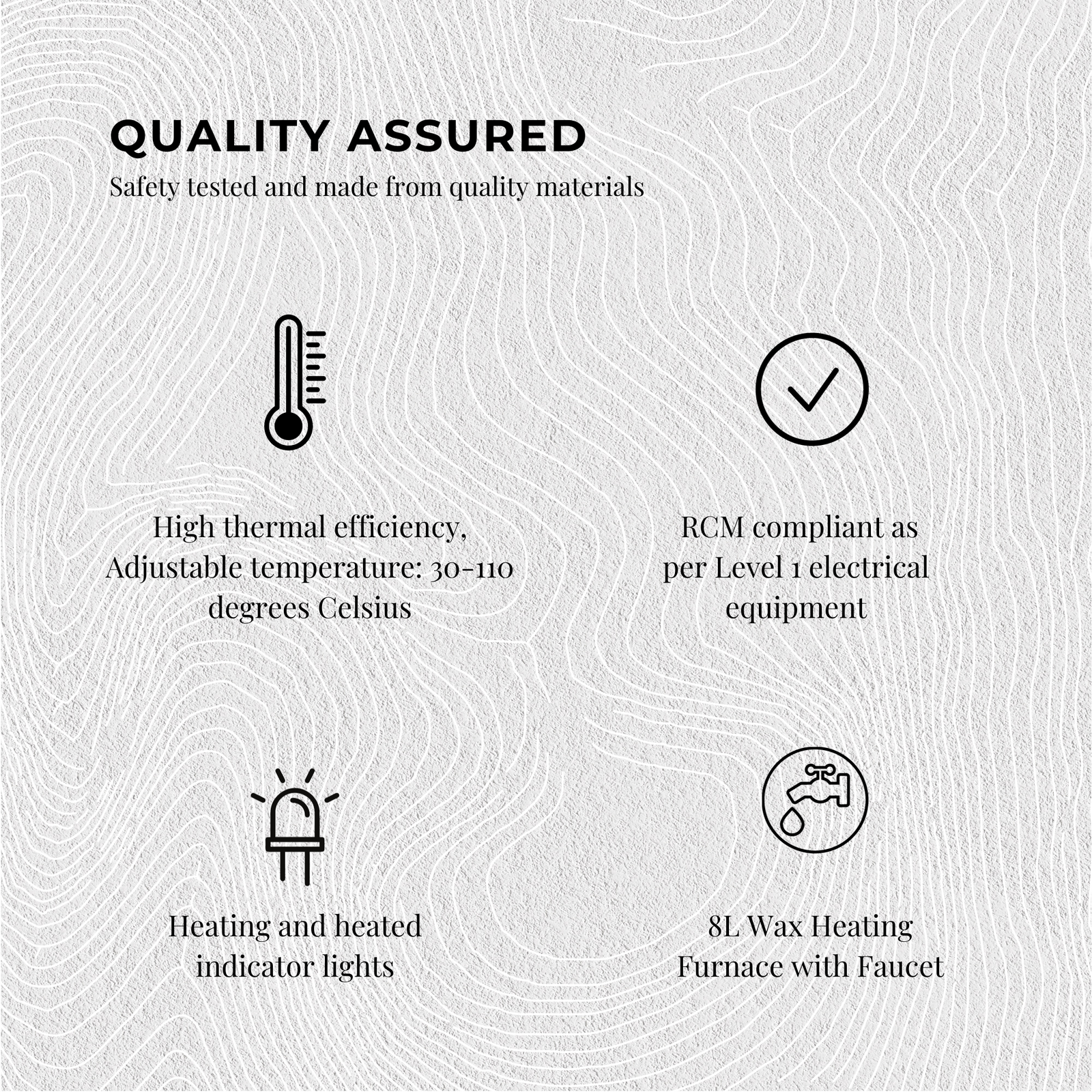 This wax melting furnace is an ideal addition to your candle making operation. With an 8L capacity and adjustable temperature gauge from 30-100 degrees celsius, it can be used to melt all kinds of candle making waxes such as soy, paraffin, bees, hard, beads, and more.