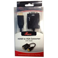 $31.958ware HDMI to VGA Converter, including line-out audio Plug & Play operation, no power adapter required. - All inputs can be scaled to output resolution as below: - 800x600@60Hz - 1024x768@60Hz - 1360x768@60Hz - 1440x900@60Hz - 1280x1024@60Hz - 1680x1050@60Hz - 1600x1200@60Hz - 1920x1080@60Hz - 1920x1200@60Hz - Flexible, portable design - Plug & Play, no external power required - Up to 720/1080i/1080p resolution - Included 3.5mm output audio socket - Input HDMI - Output VGA & Audio Connector 1: HDMI Male (19 pin) Connector 2: VGA Female (15 pin) plus 3.5mm Audio Out (stereo)