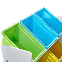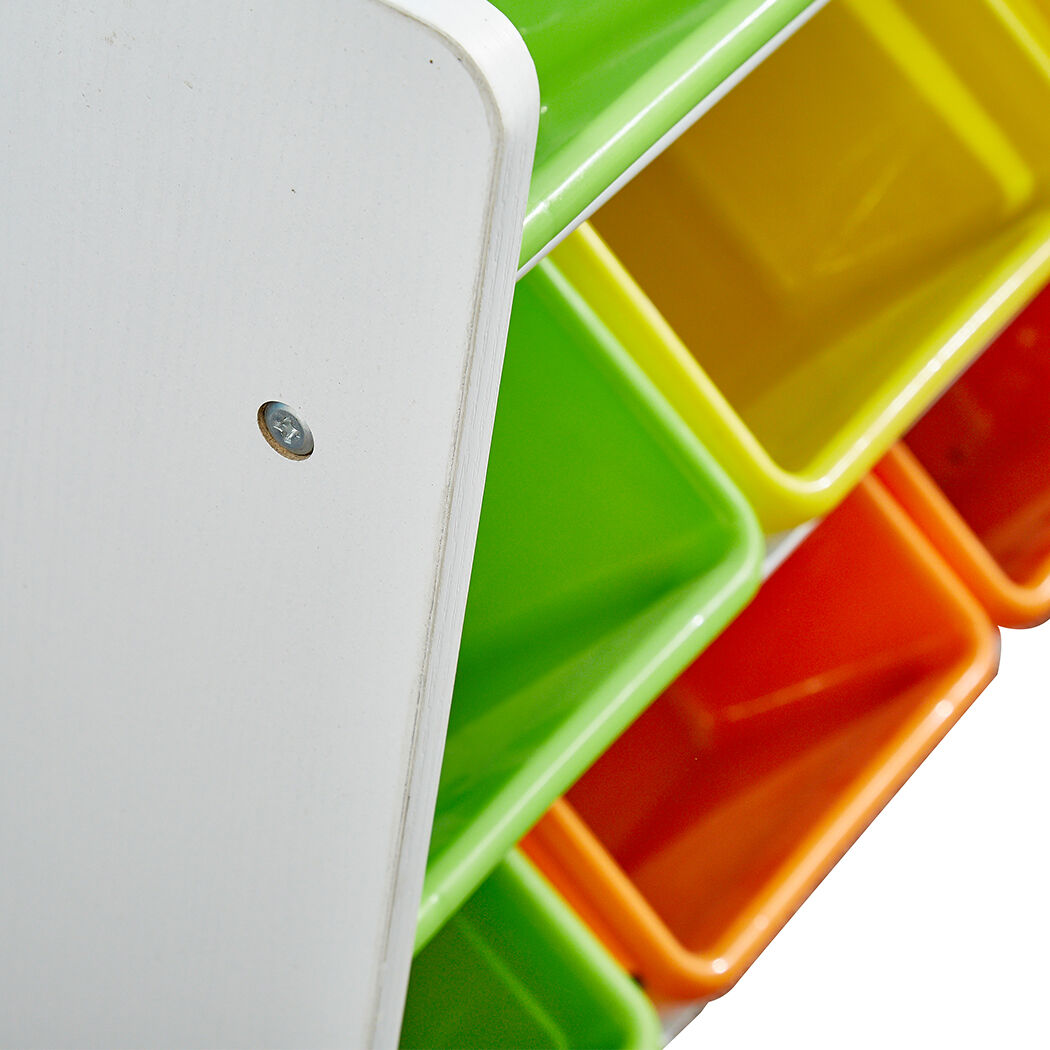 Cleverly organize your child's library and toy with the five design bookshelf or toy organizer. The sturdy, wide MDF frame won't tip and is the perfect height for small children. The sling-style shelves display the front covers of books instead of the spines so it's easier for young readers to choose the perfect picture book for story time. The engaging, brightly coloured shelves accommodate books of almost any size and are easy for kids to use. The Bin Storage Unit style Organizers create a clutter-free zone. Every toy deserves a place to call home, and this toy organizer makes it easy and fun for kids to keep their play space tidy.