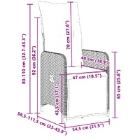 Enjoy a coffee or have a chat with your family and friends in the garden, backyard, or on the balcony with this comfortable bistro set! Durable material: PE rattan, also known as poly rattan, is a strong, low-maintenance synthetic material that looks like natural rattan. It's lightweight, easy to clean, and commonly used for outdoor furniture due to its durability and weather-resistant properties.Adjustable backrest and footrest: This garden seat has a handle. You can adjust the backrest and footrest to any position by pulling the handle, and quickly return it to its original position.Comfortable seat experience: This outdoor furniture, complete with thickly padded cushions, offers a comfortable seating experience.Removable and washable cover: These seat cushions feature removable covers for easy washing and maintenance. The back cushions have a flap at the back for easy attachment to the backrests.Stable and easy-to-clean tabletop: This garden table has an acacia wood top that is sturdy, durable, and easy to clean with a damp cloth. Good to know:To make sure your outdoor furniture stays beautiful, we recommend protecting it with a waterproof cover.