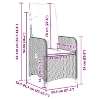 Enjoy a coffee or have a chat with your family and friends in the garden, backyard, or on the balcony with this comfortable bistro set! Durable material: PE rattan, also known as poly rattan, is a strong, low-maintenance synthetic material that looks like natural rattan. It's lightweight, easy to clean, and commonly used for outdoor furniture due to its durability and weather-resistant properties.Adjustable backrest and footrest: This garden seat has a handle. You can adjust the backrest and footrest to any position by pulling the handle, and quickly return it to its original position.Comfortable seat experience: This outdoor furniture, complete with thickly padded cushions, offers a comfortable seating experience.Removable and washable cover: These seat cushions feature removable covers for easy washing and maintenance. The back cushions have a flap at the back for easy attachment to the backrests.Glass tabletop: The outdoor table's top is made from strong and durable tempered glass, making it easy to clean with a damp cloth and adding a touch of elegance to your outdoor space. Good to know:To make sure your outdoor furniture stays beautiful, we recommend protecting it with a waterproof cover.