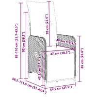 Enjoy a coffee or have a chat with your family and friends in the garden, backyard, or on the balcony with this comfortable bistro set! Durable material: PE rattan, also known as poly rattan, is a strong, low-maintenance synthetic material that looks like natural rattan. It's lightweight, easy to clean, and commonly used for outdoor furniture due to its durability and weather-resistant properties.Adjustable backrest and footrest: This garden seat has a handle. You can adjust the backrest and footrest to any position by pulling the handle, and quickly return it to its original position.Comfortable seat experience: This outdoor furniture, complete with thickly padded cushions, offers a comfortable seating experience.Removable and washable cover: These seat cushions feature removable covers for easy washing and maintenance. The back cushions have a flap at the back for easy attachment to the backrests.Glass tabletop: The outdoor table's top is made from strong and durable tempered glass, making it easy to clean with a damp cloth and adding a touch of elegance to your outdoor space. Good to know:To make sure your outdoor furniture stays beautiful, we recommend protecting it with a waterproof cover.