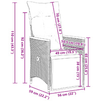Enjoy a coffee or have a chat with your family and friends in the garden, backyard, or on the balcony with this comfortable bistro set! Durable material: PE rattan, also known as poly rattan, is a strong, low-maintenance synthetic material that looks like natural rattan. It's lightweight, easy to clean, and commonly used for outdoor furniture due to its durability and weather-resistant properties.Adjustable backrest and footrest: This garden seat has a handle. You can adjust the backrest and footrest to any position by pulling the handle, and quickly return it to its original position.Comfortable seat experience: This outdoor furniture, complete with thickly padded cushions, offers a comfortable seating experience.Removable and washable cover: These seat cushions feature removable covers for easy washing and maintenance. The back cushions have a flap at the back for easy attachment to the backrests.Stable and easy-to-clean tabletop: This garden table has an acacia wood top that is sturdy, durable, and easy to clean with a damp cloth. Good to know:To make sure your outdoor furniture stays beautiful, we recommend protecting it with a waterproof cover.