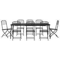 Enjoy a nice meal or afternoon tea in your outdoor space with this garden dining set! Featuring an elegant design, it will become the focal point of your garden and patio! Sturdy frame: The metal frame makes this garden furniture set sturdy and durable, providing a lifelong service.Mesh design: This dining set, with the mesh design, can effectively avoid water accumulation, adding a stylish appearance to your outdoor living space.Practical tabletop: The sturdy tabletop of the garden dining table is perfect for placing meals, drinks, and other decorative items.Easy movement: These garden dining chairs are foldable to save space when not in use. You can easily carry them with you anywhere on your outdoor trips. Good to know:To make sure your outdoor furniture stays beautiful, we recommend protecting it with a waterproof cover.