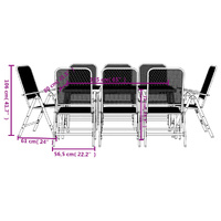 Enjoy a nice meal or afternoon tea in your outdoor space with this garden dining set! Featuring an elegant design, it will become the focal point of your garden and patio! Sturdy frame: The metal frame makes this garden furniture set sturdy and durable, providing a lifelong service.Mesh design: This dining set, with the mesh design, can effectively avoid water accumulation, adding a stylish appearance to your outdoor living space.Practical tabletop: The sturdy tabletop of the garden dining table is perfect for placing meals, drinks, and other decorative items.Easy movement: These garden dining chairs are foldable to save space when not in use. You can easily carry them with you anywhere on your outdoor trips.Adjustable backrest: These reclining chairs have backrests that recline in 7 settings, so you can always find the most comfortable position. Good to know:To make sure your outdoor furniture stays beautiful, we recommend protecting it with a waterproof cover.