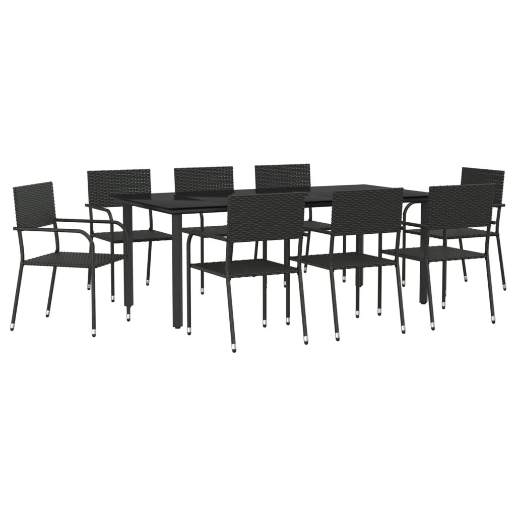 Enjoy a nice meal or afternoon tea in your outdoor space with this garden dining set! Featuring an elegant design, it will become the focal point of your garden and patio! Durable material: Poly rattan is an exceptional resistance material and durable in different weather conditions. It also needs little maintenance.Sturdy frame: This garden table and chair are constructed with a steel frame, which ensures sturdiness and stability.Practical tabletop: The smooth tabletop of the dinner table is made of tempered glass which is easy to clean with a damp cloth. Additionally, the sturdy tabletop is perfect for placing meals, drinks, and other decorative items.Space-saving chair: The dinner chair is lightweight and can be stacked to save space when not in use. Good to know:To make sure your outdoor furniture stays beautiful, we recommend protecting it with a waterproof cover.