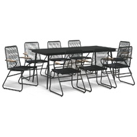 Enjoy a cosy coffee time in your outdoor space with this garden dining set! This dining set is a perfect addition to your garden and terrace, creating a lasting impression! Durable PVC rattan: PVC rattan is a sturdier and more durable option for natural rattan. PVC is known for its weather-resistant qualities like protection from UV rays and resistance to moisture.Sturdy frame: The steel frame of the garden dining set ensures sturdiness and stability.Sturdy tabletop: The sturdy tabletop of the dinner table is perfect for placing meals, drinks, vases, fruit bowls, or other decorative items.Comfortable seat experience: With a backrest and armrests, the garden seating allows you to sit back comfortably after a long day. Note:To make sure your outdoor furniture stays beautiful, we recommend protecting it with a waterproof cover.