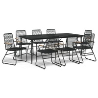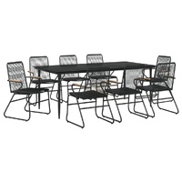 Relax and enjoy a lovely afternoon tea or any meal with your family and friends around this garden dining set! Durable PVC rattan: PVC rattan is a sturdier and more durable option for natural rattan. PVC is known for its weather-resistant qualities like protection from UV rays and resistance to moisture.Sturdy frame: The steel frames of the dining set ensure sturdiness and stability.Practical tabletop: The smooth glass tabletop is easy to clean with a damp cloth and is perfect for placing meals, drinks and other decorative items.Comfortable seating: The dining chair is designed with a backrest and armrests to offer you a comfortable seating experience. Note:To make sure your outdoor furniture stays beautiful, we recommend protecting it with a waterproof cover.