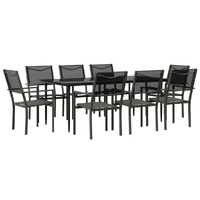 Enjoy a nice meal or afternoon tea in your outdoor space with this garden dining set! Featuring an elegant design, it will become the focal point of your garden and patio! Stable frame: The armchairs and table have a powder-coated steel construction, making them sturdy and stable.Durable material: Thanks to the strong textilene fabric, these outdoor chairs are weather-resistant and easy to clean.Sturdy tabletop: The tabletop is made of tempered glass, making it easy to clean. Additionally, the tabletop is perfect for placing snacks, drinks, vases, fruit bowls, or other decorative items.Comfortable seating experience: The ergonomic backrest and armrests give you a better seating experience. Good to know:To make sure your outdoor furniture stays beautiful, we recommend protecting it with a waterproof cover.