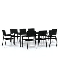 Enjoy a nice meal or afternoon tea in your outdoor space with this garden dining set! Featuring an elegant design, it will become the focal point of your garden and patio! The practical outdoor dining set has a steel frame, making it strong and sturdy. The garden chairs are made of water-resistant and maintenance-free PE rattan, making them perfect for outdoor use. Meanwhile, these outdoor chairs are lightweight and can be stacked to save space when not in use. In addition, the smooth glass tabletop is easy to clean with a damp cloth and excellent for placing meals, drinks and other decorative items. Note: In order to extend the life of your outdoor furniture, we recommend you to clean it regularly and do not leave it outdoors without protection unnecessarily.Clean: Use a mild soap solution.Storing: If possible, store in a cool, dry place indoors. If the product is stored outdoors, protect it with a waterproof cover. Wipe and dry the excess water or snow from flat surfaces after a rain or snowfall. Allow sufficient air circulation to avoid moisture-related damage.