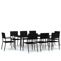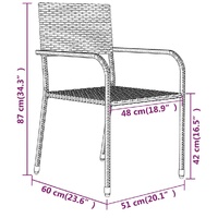 Enjoy a nice meal or afternoon tea in your outdoor space with this garden dining set! Featuring an elegant design, it will become the focal point of your garden and patio! The practical outdoor dining set has a steel frame, making it strong and sturdy. The garden chairs are made of water-resistant and maintenance-free PE rattan, making them perfect for outdoor use. Meanwhile, these outdoor chairs are lightweight and can be stacked to save space when not in use. In addition, the smooth glass tabletop is easy to clean with a damp cloth and excellent for placing meals, drinks and other decorative items. Note: In order to extend the life of your outdoor furniture, we recommend you to clean it regularly and do not leave it outdoors without protection unnecessarily.Clean: Use a mild soap solution.Storing: If possible, store in a cool, dry place indoors. If the product is stored outdoors, protect it with a waterproof cover. Wipe and dry the excess water or snow from flat surfaces after a rain or snowfall. Allow sufficient air circulation to avoid moisture-related damage.