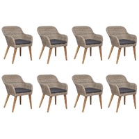 Create a compelling and cohesive aesthetic in your outdoor space with this garden dining set! The dinner table is made of solid acacia wood with an oil finish, which makes it stable, durable and easy to maintain. Featuring a powder-coated steel frame covered with weather-resistant PE rattan, these dining chairs are sturdy and easy to clean. The ergonomically-designed shape and thickly-padded cushions will provide the ultimate seating comfort. The low-maintenance polyester cushion covers can be easily removed and washed. Important note: We recommend covering the dining set during rain, snow and frost for its best service to last.