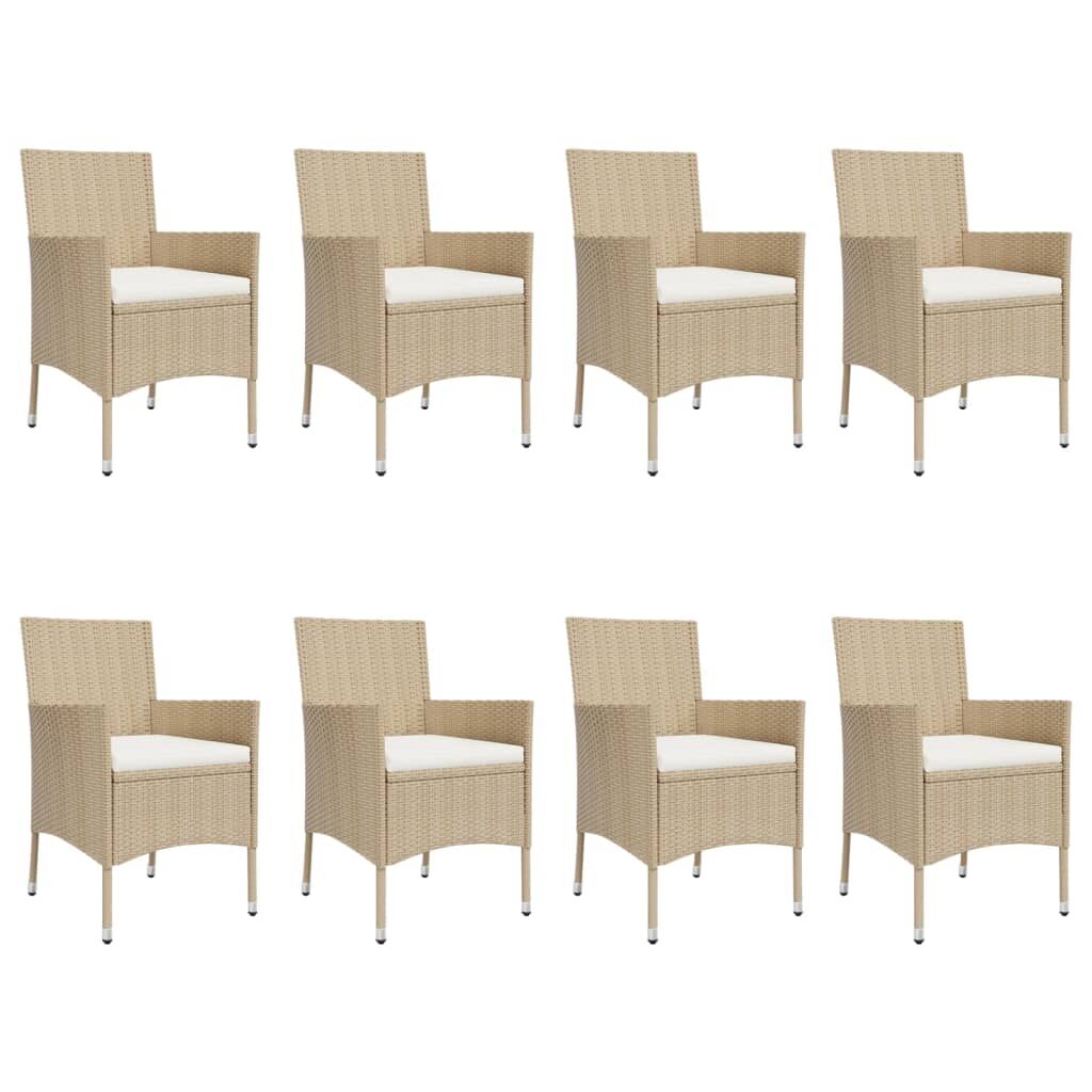 This stylish garden dining set provides you with a leisurely and comfortable time with your family and friends. Weather-resistant material: PE rattan, also known as poly rattan, is weather resistant and easy to clean. It remains beautiful on the outside for a long period of time. It offers great quality, convenience and an aesthetic look. Sturdy and stable frame: The powder-coated steel frame of the dining set ensures sturdiness and stability. Comfortable seat experience: The thickly padded cushions of the dining chairs provide the ultimate comfort for your sitting time.Practical table: The smooth tabletop of the dining table is made of tempered glass which is easy to clean with a damp cloth. Additionally, the sturdy tabletop is perfect for placing meals, drinks, and other decorative items.Flexible design: Thanks to the lightweight construction, these garden dining chairs are easy to move. Note:To make sure your outdoor furniture stays beautiful, we recommend protecting it with a waterproof cover.