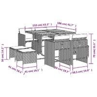 This garden dining set is a great choice for al fresco dining or just relaxing in the garden, backyard, or on the patio. Durable material: PE rattan, also known as poly rattan, is a strong, low-maintenance synthetic material that looks like natural rattan. It's lightweight, easy to clean, and commonly used for outdoor furniture due to its durability and weather-resistant properties.Compact storage: These chairs have a flap backrest that can be folded down, making it easy to store them under the table. When folded, they neatly fit under the table, forming a space-saving cube shape. Additionally, the stools can also be stored under the chairs, further maximizing space efficiency.Comfortable seat experience: This outdoor furniture, complete with thickly padded cushions, offers a comfortable seating experience.Removable and washable cover: These seat cushions feature removable covers for easy washing and maintenance. The chair cushion covers have a flap at the back for easy attachment to the chairs.Stable and easy-to-clean tabletop: This garden table has an acacia wood top that is sturdy, durable, and easy to clean with a damp cloth. Good to know: To make sure your outdoor furniture stays beautiful, we recommend protecting it with a waterproof cover.