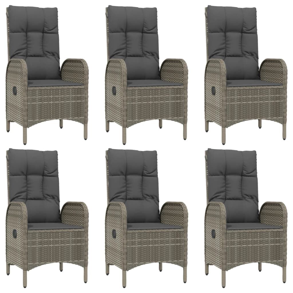 This trendy garden dining set, featuring an elegant and contemporary design, is a great choice for dining or relaxing in your garden. Weather-resistant material: PE rattan, also known as poly rattan, is weather resistant and easy to clean. It remains beautiful on the outside for a long period of time. It offers great quality, convenience and an aesthetic look.Sturdy frame: The powder-coated steel frames make the outdoor dining set sturdy and stable for daily outdoor use.Practical tabletop: The smooth tabletop of the garden table is made of tempered glass which is easy to clean with a damp cloth. Additionally, the sturdy tabletop is perfect for placing meals, drinks, and other decorative items.Reclining function: The garden chairs are specially designed with a reclining function so that you can adjust the backrest as per your comfort.Comfortable seat experience: The backrest adds extra seating comfort for the garden chair. Also, the thickly padded cushions provide comfort for your sitting time. Good to know:To make assembly as easy as possible, each product is delivered with a manual. Note:To make sure your outdoor furniture stays beautiful, we recommend protecting it with a waterproof cover.