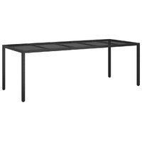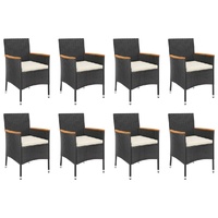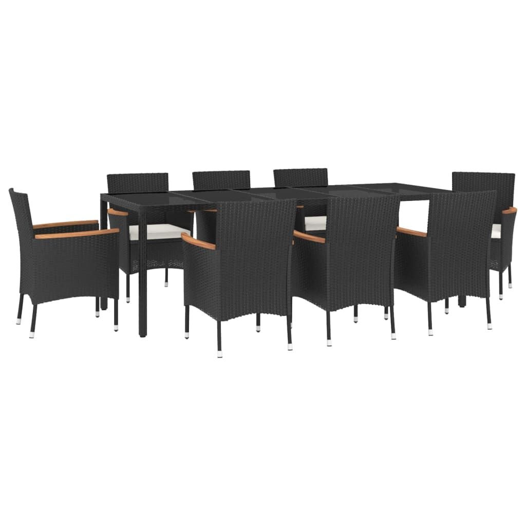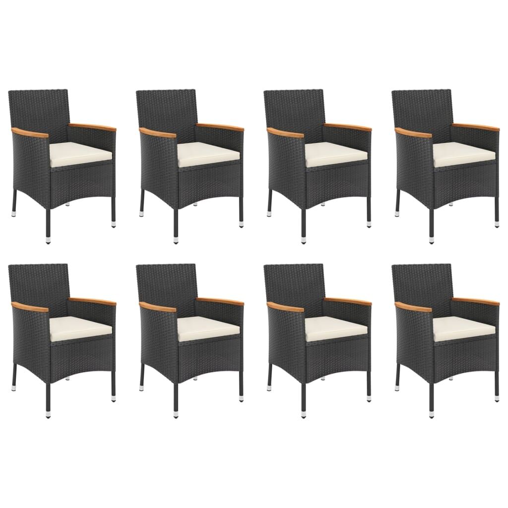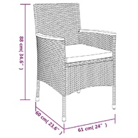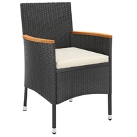 This stylish garden dining set provides you with a leisurely and comfortable time with your family and friends. Weather-resistant material: PE rattan, also known as poly rattan, is weather resistant and easy to clean. It remains beautiful on the outside for a long period of time. It offers great quality, convenience and an aesthetic look. Solid acacia wood: Solid acacia wood is a beautiful natural material. Acacia wood is a tropical hardwood, which is dense, sturdy, and durable.Sturdy and stable frame: The powder-coated steel frame of the dining set ensures sturdiness and stability. Comfortable seat experience: The thickly padded cushions of the dining chairs provide the ultimate comfort for your sitting time.Practical table: The smooth tabletop of the dining table is made of tempered glass which is easy to clean with a damp cloth. Additionally, the sturdy tabletop is perfect for placing meals, drinks, and other decorative items.Flexible design: Thanks to the lightweight construction, these garden dining chairs are easy to move. Note:To make sure your outdoor furniture stays beautiful, we recommend protecting it with a waterproof cover.