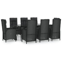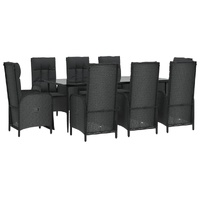 This trendy garden dining set, featuring an elegant and contemporary design, is a great choice for dining or relaxing in your garden. Weather-resistant material: PE rattan, also known as poly rattan, is weather resistant and easy to clean. It remains beautiful on the outside for a long period of time. It offers great quality, convenience and an aesthetic look.Sturdy frame: The powder-coated steel frames make the outdoor dining set sturdy and stable for daily outdoor use.Practical tabletop: The smooth tabletop of the garden table is made of tempered glass which is easy to clean with a damp cloth. Additionally, the sturdy tabletop is perfect for placing meals, drinks, and other decorative items.Reclining function: The garden chairs are specially designed with a reclining function so that you can adjust the backrest as per your comfort.Comfortable seat experience: The backrest adds extra seating comfort for the garden chair. Also, the thickly padded cushions provide comfort for your sitting time. Good to know:To make assembly as easy as possible, each product is delivered with a manual. Note:To make sure your outdoor furniture stays beautiful, we recommend protecting it with a waterproof cover.