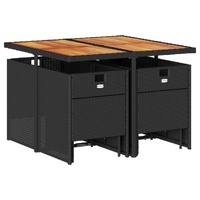 This garden dining set is a great choice for al fresco dining or just relaxing in the garden, backyard, or on the patio. Durable material: PE rattan, also known as poly rattan, is a strong, low-maintenance synthetic material that looks like natural rattan. It's lightweight, easy to clean, and commonly used for outdoor furniture due to its durability and weather-resistant properties.Compact storage: These chairs have a flap backrest that can be folded down, making it easy to store them under the table. When folded, they neatly fit under the table, forming a space-saving cube shape. Additionally, the stools can also be stored under the chairs, further maximising space efficiency. Comfortable seat experience: This outdoor furniture, complete with thickly padded cushions, offers a comfortable seating experience.Removable and washable cover: These seat cushions feature removable covers for easy washing and maintenance.Stable and easy-to-clean tabletop: This garden table has an acacia wood top that is sturdy, durable, and easy to clean with a damp cloth. Good to know: To make sure your outdoor furniture stays beautiful, we recommend protecting it with a waterproof cover.
