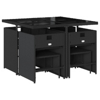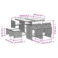 This garden dining set is a great choice for al fresco dining or just relaxing in the garden, backyard, or on the patio. Durable material: PE rattan, also known as poly rattan, is a strong, low-maintenance synthetic material that looks like natural rattan. It's lightweight, easy to clean, and commonly used for outdoor furniture due to its durability and weather-resistant properties.Compact storage: These chairs have a flap backrest that can be folded down, making it easy to store them under the table. When folded, they neatly fit under the table, forming a space-saving cube shape. Additionally, the stools can also be stored under the chairs, further maximizing space efficiency.Comfortable seat experience: This outdoor furniture, complete with thickly padded cushions, offers a comfortable seating experience.Removable and washable cover: These seat cushions feature removable covers for easy washing and maintenance. The chair cushion covers have a flap at the back for easy attachment to the chairs.Stable and easy-to-clean tabletop: This garden table has a tempered glass table top that is sturdy, durable, and easy to clean with a damp cloth. Good to know: To make sure your outdoor furniture stays beautiful, we recommend protecting it with a waterproof cover.