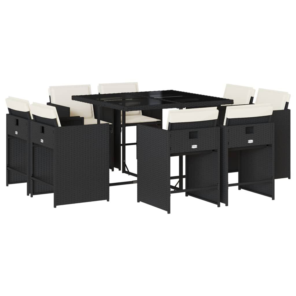 This garden dining set is a great choice for al fresco dining or just relaxing in the garden, backyard, or on the patio. Durable material: PE rattan, also known as poly rattan, is a strong, low-maintenance synthetic material that looks like natural rattan. It's lightweight, easy to clean, and commonly used for outdoor furniture due to its durability and weather-resistant properties.Compact storage: These chairs have a flap backrest that can be folded down, making it easy to store them under the table. When folded, they neatly fit under the table, forming a space-saving cube shape.Comfortable seat experience: This outdoor furniture, complete with thickly padded cushions, offers a comfortable seating experience.Removable and washable cover: These seat cushions feature removable covers for easy washing and maintenance. The chair cushion covers have a flap at the back for easy attachment to the chairs.Stable and easy-to-clean tabletop: This garden table has a tempered glass table top that is sturdy, durable, and easy to clean with a damp cloth. Good to know: To make sure your outdoor furniture stays beautiful, we recommend protecting it with a waterproof cover.