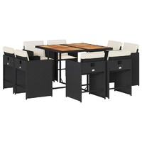This garden dining set is a great choice for al fresco dining or just relaxing in the garden, backyard, or on the patio. Durable material: PE rattan, also known as poly rattan, is a strong, low-maintenance synthetic material that looks like natural rattan. It's lightweight, easy to clean, and commonly used for outdoor furniture due to its durability and weather-resistant properties.Compact storage: These chairs have a flap backrest that can be folded down, making it easy to store them under the table. When folded, they neatly fit under the table, forming a space-saving cube shape.Comfortable seat experience: This outdoor furniture, complete with thickly padded cushions, offers a comfortable seating experience.Removable and washable cover: These seat cushions feature removable covers for easy washing and maintenance. The chair cushion covers have a flap at the back for easy attachment to the chairs.Stable and easy-to-clean tabletop: This garden table has an acacia wood top that is sturdy, durable, and easy to clean with a damp cloth. Good to know: To make sure your outdoor furniture stays beautiful, we recommend protecting it with a waterproof cover.