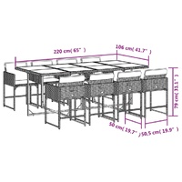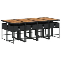 This garden dining set is a great choice for al fresco dining or just relaxing in the garden, backyard, or on the patio. Durable material: PE rattan, also known as poly rattan, is a strong, low-maintenance synthetic material that looks like natural rattan. It's lightweight, easy to clean, and commonly used for outdoor furniture due to its durability and weather-resistant properties.Compact storage: These chairs have a flap backrest that can be folded down, making it easy to store them under the table. When folded, they neatly fit under the table, forming a space-saving cube shape.Comfortable seat experience: This outdoor furniture, complete with thickly padded cushions, offers a comfortable seating experience.Removable and washable cover: These seat cushions feature removable covers for easy washing and maintenance. The cushion covers have a flap at the back for easy attachment to the backrests.Stable and easy-to-clean tabletop: This garden table has an acacia wood top that is sturdy, durable, and easy to clean with a damp cloth. Good to know:To make sure your outdoor furniture stays beautiful, we recommend protecting it with a waterproof cover.