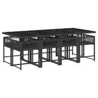 This garden dining set is a great choice for al fresco dining or just relaxing in the garden, backyard, or on the patio. Durable material: PE rattan, also known as poly rattan, is a strong, low-maintenance synthetic material that looks like natural rattan. It's lightweight, easy to clean, and commonly used for outdoor furniture due to its durability and weather-resistant properties.Compact storage: These chairs have a flap backrest that can be folded down, making it easy to store them under the table. When folded, they neatly fit under the table, forming a space-saving cube shape.Comfortable seat experience: This outdoor furniture, complete with thickly padded cushions, offers a comfortable seating experience.Removable and washable cover: These seat cushions feature removable covers for easy washing and maintenance. The cushion covers have a flap at the back for easy attachment to the backrests.Glass tabletop: The outdoor table's top is made from strong and durable tempered glass, making it easy to clean with a damp cloth and adding a touch of elegance to your outdoor space. Good to know:To make sure your outdoor furniture stays beautiful, we recommend protecting it with a waterproof cover.