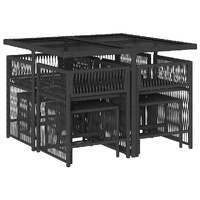 This garden dining set is a great choice for al fresco dining or just relaxing in the garden, backyard, or patio. Durable material: PE rattan, also known as poly rattan, is a strong, low-maintenance synthetic material that looks like natural rattan. It's lightweight, easy to clean, and commonly used for outdoor furniture due to its durability and weather-resistant properties.Compact storage: These chairs have a flap backrest that can be folded down, making it easy to store them under the table. When folded, they neatly fit under the table, forming a space-saving cube shape.Comfortable seat experience: This outdoor furniture, complete with thickly padded cushions, offers a comfortable seating experience.Removable and washable cover: These seat cushions feature removable covers for easy washing and maintenance. The cushion covers have a flap at the back for easy attachment to the backrests.Glass tabletop: The outdoor table's top is made from strong and durable tempered glass, making it easy to clean with a damp cloth and adding a touch of elegance to your outdoor space. Good to know:To make sure your outdoor furniture stays beautiful, we recommend protecting it with a waterproof cover.