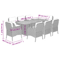 This garden dining set is a great choice for al fresco dining or just relaxing in the garden, backyard, or on the patio. Durable material: PE rattan, also known as poly rattan, is a strong, low-maintenance synthetic material that looks like natural rattan. It's lightweight, easy to clean, and commonly used for outdoor furniture due to its durability and weather-resistant properties.Comfortable seat experience: This outdoor furniture, complete with thickly padded cushions, offers a comfortable seating experience.Removable and washable cover: These seat cushions feature removable covers for easy washing and maintenance.Solid wood tabletop: This garden dining table has a wooden top that is sturdy, durable, and easy to clean with a damp cloth.Robust and stable frame: The powder-coated steel frame ensures that the garden furniture is strong and stable for daily outdoor use. Good to know:To make sure your outdoor furniture stays beautiful, we recommend protecting it with a waterproof cover.