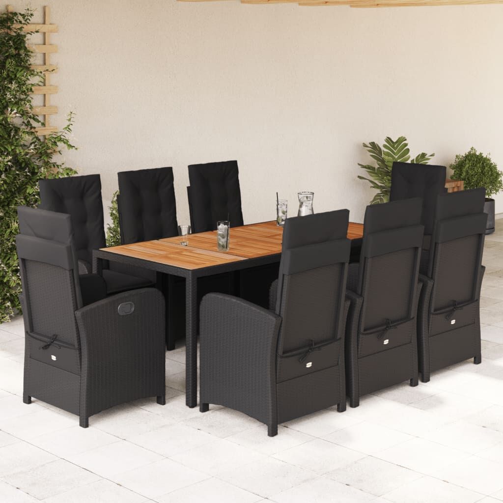This garden dining set is a great choice for al fresco dining or just relaxing in the garden, backyard, or on the patio. Durable material: PE rattan, also known as poly rattan, is a strong, low-maintenance synthetic material that looks like natural rattan. It's lightweight, easy to clean, and commonly used for outdoor furniture due to its durability and weather-resistant properties.Adjustable backrest: This garden seat has a handle. You can adjust the backrest to any position by pulling the handle, and quickly return it to its original position.Comfortable seat experience: This outdoor furniture, complete with thickly padded cushions, offers a comfortable seating experience.Removable and washable cover: These seat cushions feature removable covers for easy washing and maintenance. The back cushions have a flap at the back for easy attachment to the backrests.Glass tabletop: The outdoor table's top is made from strong and durable tempered glass, making it easy to clean with a damp cloth and adding a touch of elegance to your outdoor space. Good to know:To make sure your outdoor furniture stays beautiful, we recommend protecting it with a waterproof cover.