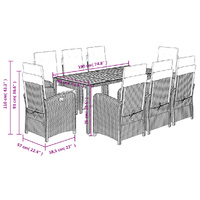 Enjoy a cup of coffee or have a chat with your family and friends in the garden, backyard, or on the balcony with this comfortable garden dining set! Durable material: PE rattan, also known as poly rattan, is a strong, low-maintenance synthetic material that looks like natural rattan. It's lightweight, easy to clean, and commonly used for outdoor furniture due to its durability and weather-resistant properties.Adjustable backrest and footrest: This garden seat has a handle. You can adjust the backrest and footrest to any position by pulling the handle, and quickly return them to their original positions.Comfortable seat experience: This outdoor furniture, complete with thickly padded cushions, offers a comfortable seating experience.Removable and washable cover: These seat cushions feature removable covers for easy washing and maintenance. The back cushions have a flap at the back for easy attachment to the backrests. Stable and easy-to-clean tabletop: This garden table has an acacia wood top that is sturdy, durable, and easy to clean with a damp cloth. Good to know:To make sure your outdoor furniture stays beautiful, we recommend protecting it with a waterproof cover.