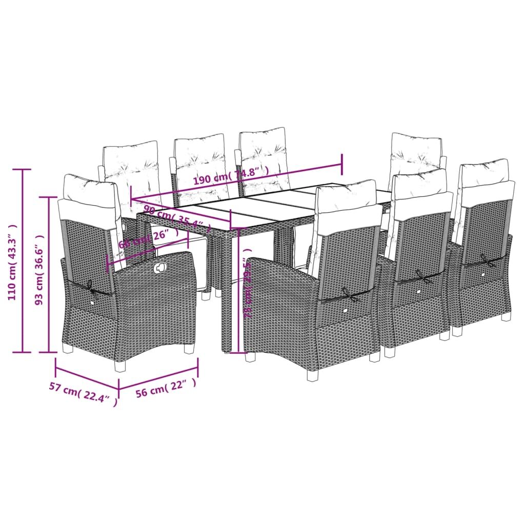 This garden dining set is a great choice for al fresco dining or just relaxing in the garden, backyard, or patio. Durable material: PE rattan, also known as poly rattan, is a strong, low-maintenance synthetic material that looks like natural rattan. It's lightweight, easy to clean, and commonly used for outdoor furniture due to its durability and weather-resistant properties.Adjustable backrest and footrest: This garden seat has a handle. You can adjust the backrest and footrest to any position by pulling the handle, and quickly return them to their original positions.Glass tabletop: The outdoor table's top is made from strong and durable tempered glass, making it easy to clean with a damp cloth and adding a touch of elegance to your outdoor space.Comfortable seat experience: This outdoor furniture, complete with thickly padded cushions, offers a comfortable seating experience.Removable and washable cover: These seat cushions feature removable covers for easy washing and maintenance. Good to know:To make sure your outdoor furniture stays beautiful, we recommend protecting it with a waterproof cover.
