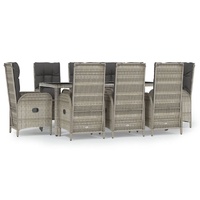 This trendy garden dining set, featuring an elegant and contemporary design, is a great choice for dining or relaxing in your garden. Weather-resistant material: PE rattan, also known as poly rattan, is weather resistant and easy to clean. It remains beautiful on the outside for a long period of time. It offers great quality, convenience and an aesthetic look.Sturdy frame: The powder-coated steel frames make the outdoor dining set sturdy and stable for daily outdoor use.Practical tabletop: The smooth tabletop of the garden table is made of tempered glass which is easy to clean with a damp cloth. Additionally, the sturdy tabletop is perfect for placing meals, drinks, and other decorative items.Reclining function: The garden chairs are specially designed with a reclining function so that you can adjust the backrest as per your comfort.Comfortable seat experience: The backrest adds extra seating comfort for the garden chair. Also, the thickly padded cushions provide comfort for your sitting time. Good to know:To make assembly as easy as possible, each product is delivered with a manual. Note:To make sure your outdoor furniture stays beautiful, we recommend protecting it with a waterproof cover.