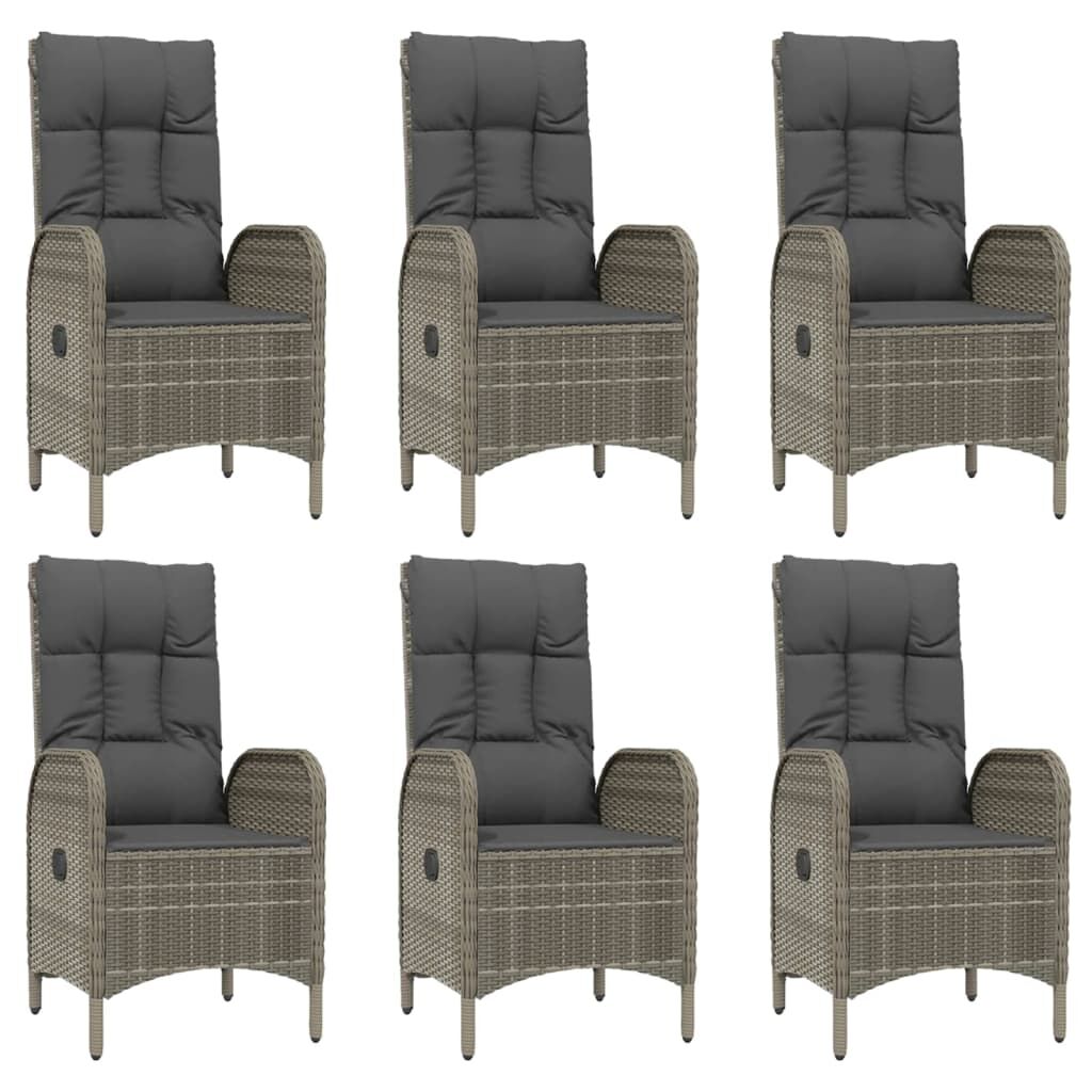 This trendy garden dining set, featuring an elegant and contemporary design, is a great choice for dining or relaxing in your garden. Weather-resistant material: PE rattan, also known as poly rattan, is weather resistant and easy to clean. It remains beautiful on the outside for a long period of time. It offers great quality, convenience and an aesthetic look.Sturdy frame: The powder-coated steel frames make the outdoor dining set sturdy and stable for daily outdoor use.Practical tabletop: The solid acacia wood tabletop is perfect for placing drinks, food and decorations. It's beautiful in appearance and easy to clean.Reclining function: The garden chairs are specially designed with a reclining function so that you can adjust the backrest as per your comfort.Comfortable seat experience: The backrest adds extra seating comfort for the garden chair. Also, the thickly padded cushions provide comfort for your sitting time. Good to know:To make assembly as easy as possible, each product is delivered with a manual. Note:To make sure your outdoor furniture stays beautiful, we recommend protecting it with a waterproof cover.