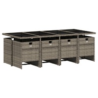 This garden dining set is a great choice for al fresco dining or just relaxing in the garden, backyard, or on the patio. Durable material: PE rattan, also known as poly rattan, is a strong, low-maintenance synthetic material that looks like natural rattan. It's lightweight, easy to clean, and commonly used for outdoor furniture due to its durability and weather-resistant properties.Compact storage: These chairs have a flap backrest that can be folded down, making it easy to store them under the table. When folded, they neatly fit under the table, forming a space-saving cube shape. Comfortable seat experience: This outdoor furniture, complete with thickly padded cushions, offers a comfortable seating experience.Removable and washable cover: These seat cushions feature removable covers for easy washing and maintenance.Glass tabletop: The outdoor table's top is made from strong and durable tempered glass, making it easy to clean with a damp cloth and adding a touch of elegance to your outdoor space. Good to know: To make sure your outdoor furniture stays beautiful, we recommend protecting it with a waterproof cover.