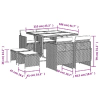 This garden dining set is a great choice for al fresco dining or just relaxing in the garden, backyard, or on the patio. Durable material: PE rattan, also known as poly rattan, is a strong, low-maintenance synthetic material that looks like natural rattan. It's lightweight, easy to clean, and commonly used for outdoor furniture due to its durability and weather-resistant properties.Compact storage: These chairs have a flap backrest that can be folded down, making it easy to store them under the table. When folded, they neatly fit under the table, forming a space-saving cube shape. Additionally, the stools can also be stored under the chairs, further maximising space efficiency. Comfortable seat experience: This outdoor furniture, complete with thickly padded cushions, offers a comfortable seating experience.Removable and washable cover: These seat cushions feature removable covers for easy washing and maintenance.Glass tabletop: The outdoor table's top is made from strong and durable tempered glass, making it easy to clean with a damp cloth and adding a touch of elegance to your outdoor space. Good to know: To make sure your outdoor furniture stays beautiful, we recommend protecting it with a waterproof cover.