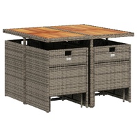 This garden dining set is a great choice for al fresco dining or just relaxing in the garden, backyard, or on the patio. Durable material: PE rattan, also known as poly rattan, is a strong, low-maintenance synthetic material that looks like natural rattan. It's lightweight, easy to clean, and commonly used for outdoor furniture due to its durability and weather-resistant properties.Compact storage: These chairs have a flap backrest that can be folded down, making it easy to store them under the table. When folded, they neatly fit under the table, forming a space-saving cube shape. Additionally, the stools can also be stored under the chairs, further maximising space efficiency. Comfortable seat experience: This outdoor furniture, complete with thickly padded cushions, offers a comfortable seating experience.Removable and washable cover: These seat cushions feature removable covers for easy washing and maintenance.Stable and easy-to-clean tabletop: This garden table has an acacia wood top that is sturdy, durable, and easy to clean with a damp cloth. Good to know: To make sure your outdoor furniture stays beautiful, we recommend protecting it with a waterproof cover.