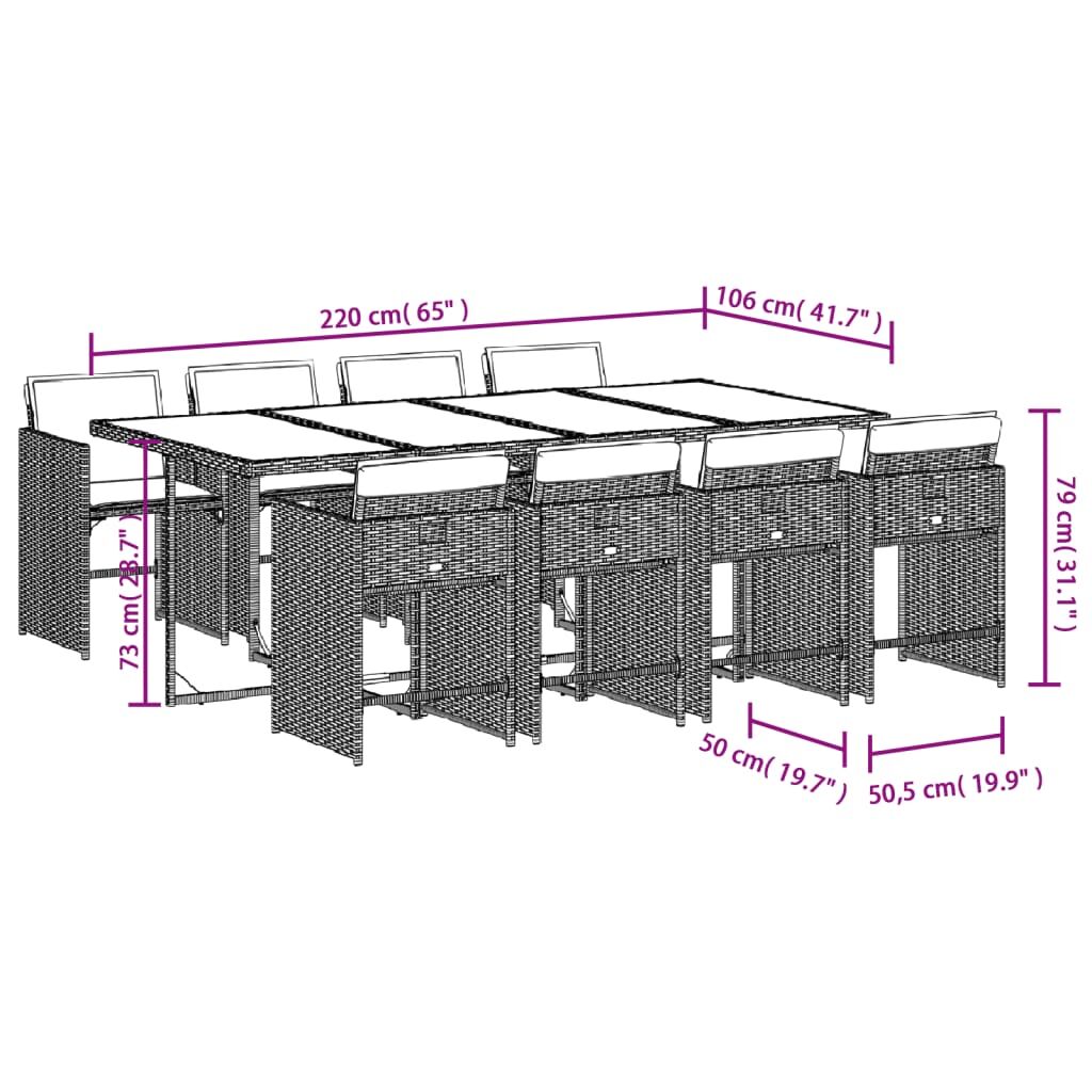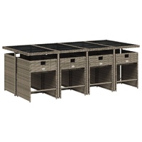 This garden dining set is a great choice for al fresco dining or just relaxing in the garden, backyard, or on the patio. Durable material: PE rattan, also known as poly rattan, is a strong, low-maintenance synthetic material that looks like natural rattan. It's lightweight, easy to clean, and commonly used for outdoor furniture due to its durability and weather-resistant properties.Compact storage: These chairs have a flap backrest that can be folded down, making it easy to store them under the table. When folded, they neatly fit under the table, forming a space-saving cube shape.Comfortable seat experience: This outdoor furniture, complete with thickly padded cushions, offers a comfortable seating experience.Removable and washable cover: These seat cushions feature removable covers for easy washing and maintenance. The chair cushion covers have a flap at the back for easy attachment to the chairs.Stable and easy-to-clean tabletop: This garden table has a tempered glass table top that is sturdy, durable, and easy to clean with a damp cloth. Good to know: To make sure your outdoor furniture stays beautiful, we recommend protecting it with a waterproof cover.