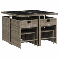 This garden dining set is a great choice for al fresco dining or just relaxing in the garden, backyard, or on the patio. Durable material: PE rattan, also known as poly rattan, is a strong, low-maintenance synthetic material that looks like natural rattan. It's lightweight, easy to clean, and commonly used for outdoor furniture due to its durability and weather-resistant properties.Compact storage: These chairs have a flap backrest that can be folded down, making it easy to store them under the table. When folded, they neatly fit under the table, forming a space-saving cube shape. Additionally, the stools can also be stored under the chairs, further maximizing space efficiency.Comfortable seat experience: This outdoor furniture, complete with thickly padded cushions, offers a comfortable seating experience.Removable and washable cover: These seat cushions feature removable covers for easy washing and maintenance. The chair cushion covers have a flap at the back for easy attachment to the chairs.Stable and easy-to-clean tabletop: This garden table has a tempered glass table top that is sturdy, durable, and easy to clean with a damp cloth. Good to know: To make sure your outdoor furniture stays beautiful, we recommend protecting it with a waterproof cover.