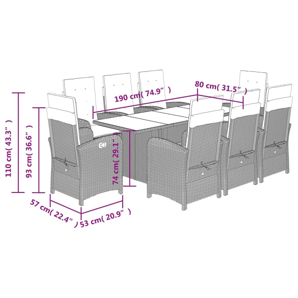 This garden dining set is a great choice for al fresco dining or just relaxing in the garden, backyard, or on the patio. Durable material: PE rattan, also known as poly rattan, is a strong, low-maintenance synthetic material that looks like natural rattan. It's lightweight, easy to clean, and commonly used for outdoor furniture due to its durability and weather-resistant properties.Adjustable backrest: This garden seat has a handle. You can adjust the backrest to any position by pulling the handle, and quickly return it to its original position.Comfortable seat experience: This outdoor furniture, complete with thickly padded cushions, offers a comfortable seating experience.Removable and washable cover: These seat cushions feature removable covers for easy washing and maintenance. The back cushions have a flap at the back for easy attachment to the backrests.Glass tabletop: The outdoor table's top is made from strong and durable tempered glass, making it easy to clean with a damp cloth and adding a touch of elegance to your outdoor space. Good to know:To make sure your outdoor furniture stays beautiful, we recommend protecting it with a waterproof cover.