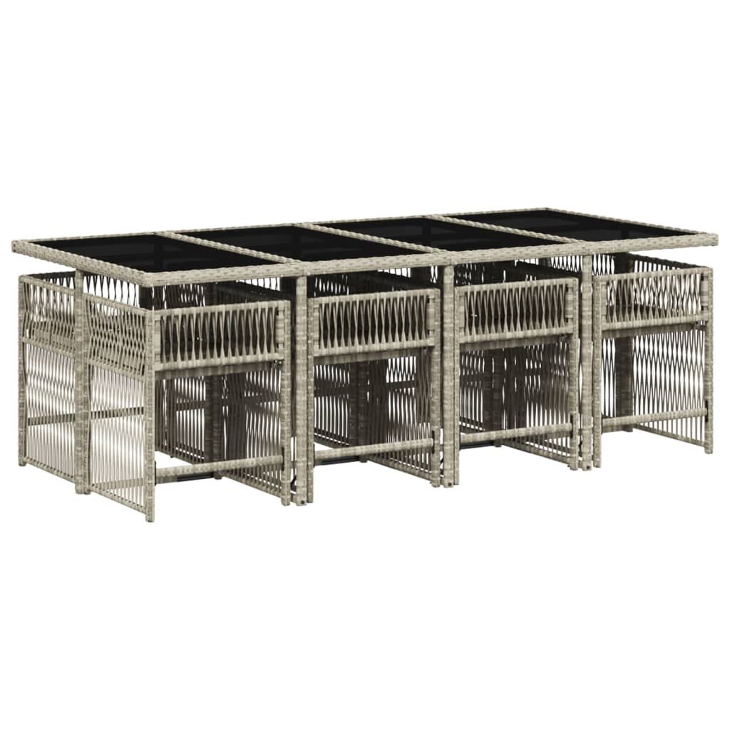 This garden dining set is a great choice for al fresco dining or just relaxing in the garden, backyard, or patio. Durable material: PE rattan, also known as poly rattan, is a strong, low-maintenance synthetic material that looks like natural rattan. It's lightweight, easy to clean, and commonly used for outdoor furniture due to its durability and weather-resistant properties.Compact storage: These chairs have a flap backrest that can be folded down, making it easy to store them under the table. When folded, they neatly fit under the table, forming a space-saving cube shape.Comfortable seat experience: This outdoor furniture, complete with thickly padded cushions, offers a comfortable seating experience.Removable and washable cover: These seat cushions feature removable covers for easy washing and maintenance. The cushion covers have a flap at the back for easy attachment to the backrests.Glass tabletop: The outdoor table's top is made from strong and durable tempered glass, making it easy to clean with a damp cloth and adding a touch of elegance to your outdoor space. Good to know:To make sure your outdoor furniture stays beautiful, we recommend protecting it with a waterproof cover.