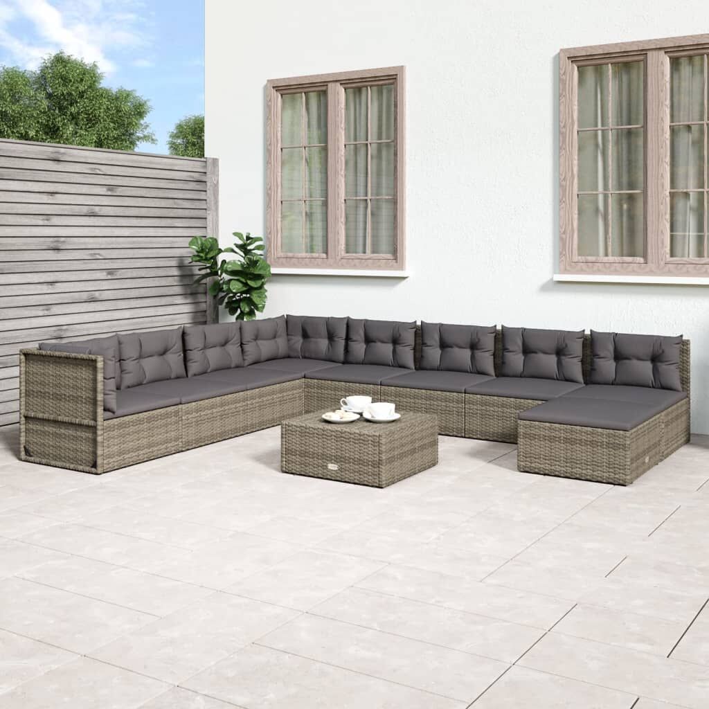 This trendy garden lounge set, featuring an elegant and contemporary design, is a great choice for relaxing in your garden. Durable material: PE rattan, also known as poly rattan, is weather resistant and easy to clean. It remains beautiful on the outside for a long period of time. It's more economical than other materials, while offering great quality, convenience and an aesthetic look.Stable frame: Steel is an exceptionally hard and strong material. It offers sturdiness and stability. The powder coating on steel creates a protective layer against wear and tear.Modular design: Each piece is easy to move around, which makes it easy for you to create different layouts that fit your needs. You can also find the single items in our webshop to arrange your own furniture patterns.Adjustable seat: The seat of the corner sofa can be adjusted at 3 angles for more comfortable sitting or lying position.Comfortable seat experience: With the thickly padded seat and back cushions, the outdoor lounge set is highly comfortable. Good to know:To make assembly as easy as possible, each product is delivered with a manual. Note:To make sure your outdoor furniture stays beautiful, we recommend protecting it with a waterproof cover.