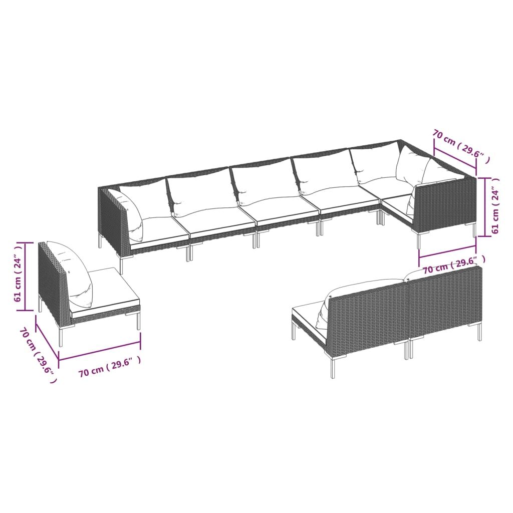 Relax and enjoy your outdoor living space with this classic garden lounge set! Sturdy frame: Featuring a powder-coated steel frame, the patio lounge set is sturdy and durable. Lightweight construction: The lightweight construction makes the sofa set easy to move.Premium material: Made of half-round PE rattan, this outdoor lounge set is weather-resistant and water-resistant, easy to clean and maintain. Comfortable cushions and pillows: The thickly padded and removable cushions and pillows provide optimal comfort for your outdoor sitting. Note:We recommend covering your garden set during rain, snow and frost for its best service to last. Also, we recommend you to clean it regularly to extend the life of your outdoor furniture. Do not leave it outdoors without protection unnecessarily.Clean: Use a mild soap solution.Storing: If possible, store in a cool, dry place indoors. If the product is stored outdoors, protect it with a waterproof cover. Wipe and dry the excess water or snow from flat surfaces after a rain or snowfall. Allow sufficient air circulation to avoid moisture-related damage.